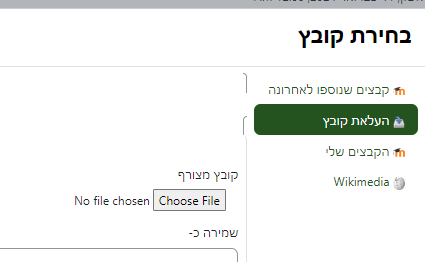 בחלונית טעינת קובת בוחרים בצד ימין ב"העלאת קובץ" ואחר על הכפתור choose File,.