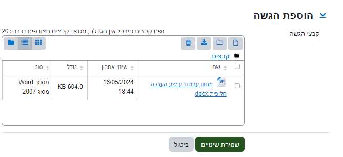 כתוצאה מכך הקובץ יופיע בחלון "הוספת הגשה".