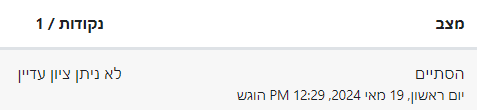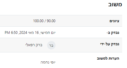 במידה וניתן ציון, והציון זמין לסטודנט יופיע אזור "משוב", ובו הציון והערות המרצה.