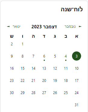 היום הנוכחי מסומן בעיגון ירוק גדול סביב התאריך.
