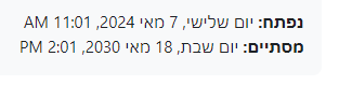 - ניתן לבחור שעה ואף להחליף את התאריך.
