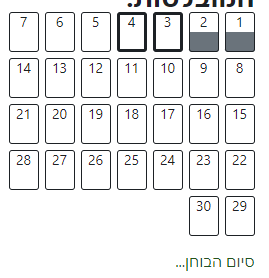 בצד המשאלי יופיע בלוק ניווט במבחן. כל כרטיס מייצג שאלה במבחן, הכרטיסים שחצי מהם מלא מראים את השאלות שנענו. הכרטיסים שגבולם כהה מראים את דף השאלות הנוכחי.