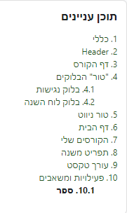 בטור הניווט מופיעים רכיבי הקורס כרשימה.