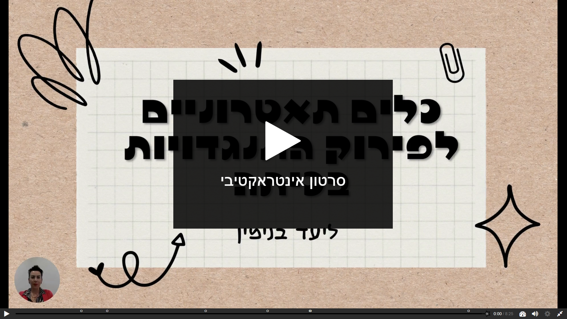 - על מנת לקבל ציון על הפעילות האינטראקטיבית יש ללחות על כפתור "שליחת תשובות" שבמסך הסיום של הסרט האינטראקטיבי.