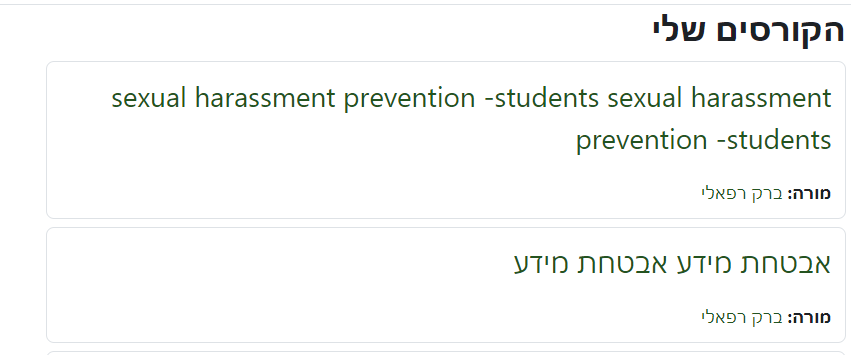 - הקורסים שלי: הפניה לעמוד המכיל את הקורסים של המשתמש.
