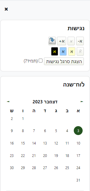 אפשרויות סרגל נגישות (מימין לשמאל):