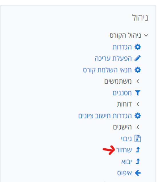 יש להוריד את הקובץ למחשב, לאתר את קורס היעד במודל החדש, ולבצע תהליך שיחזור על פי המדריך