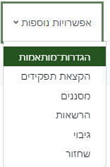 - בהתאם לבחירה יתווסף כפתור: הםסת הגדרות למשתמש\ לקבוצה.