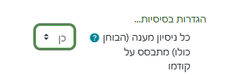 - לבחור מול "כל ניסיון מעה (הבוחן כולו) מתבסס על קודמו" ב"כן".