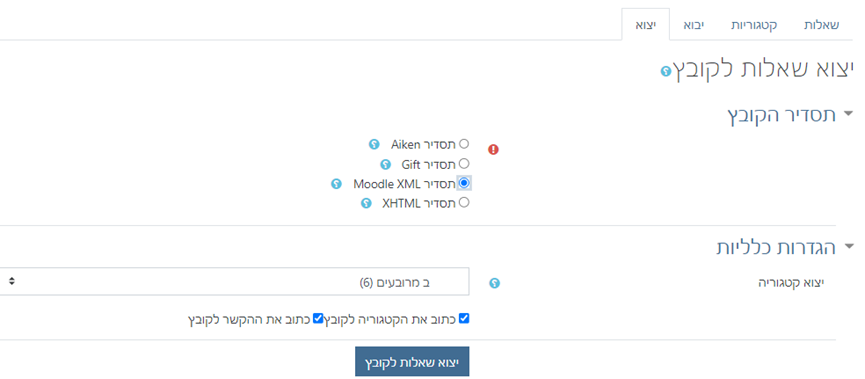 - לסיום יש ללחוץ על כפתור יצוא שאלות לקובץ