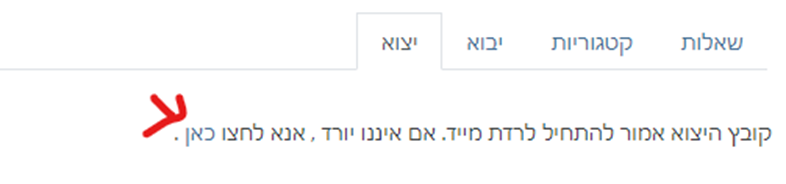 - בעמוד הבא יופיע הכיתוב "קובץ היצוא אמור להתחיל לרדת מייד. אם איננו יורד, אנא לחצו כאן. במידה והקובץ לא ירד יש להקיש על המילה "כאן".