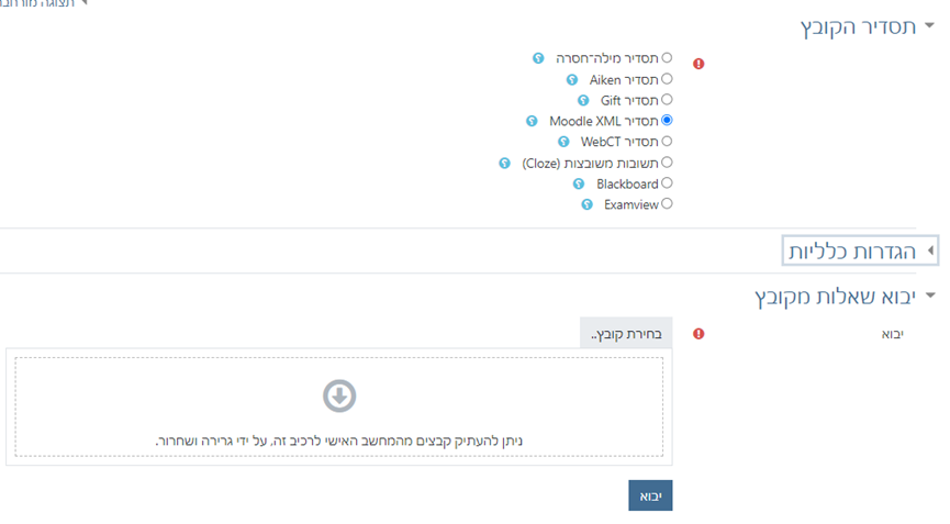 - בתסדיר יש לבחור את אותו סוג הקובץ שבו השאלות נשמרו.