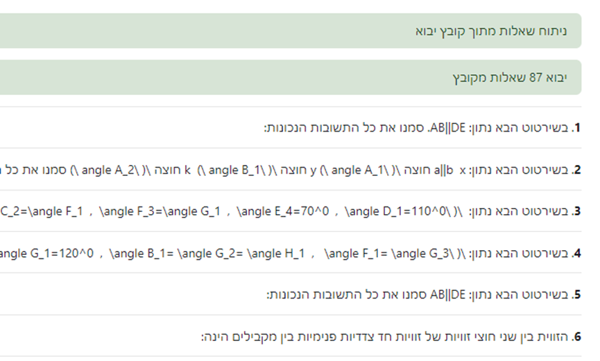 - יפתח חלון ובו פירוט השאלות שיובאו