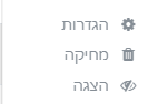 בתפריט העריכה של קטגוריה ומדד הערכה יש את האפשרויות: הגדרות, מחיקה והצגה.