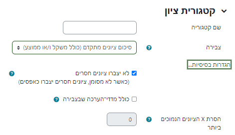 קטגוריה: קטגורית ציון היא דרך לאגד מספר פעילויות ולשקלל את הציון שלהם ביחד כחלק מהציון הכללי. בהגדרות קטגוריה ניתן: