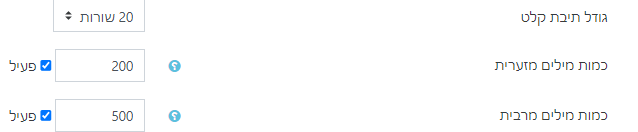 ניתן לבחור: גודל תיבת הטקסט, כמות מילים מינמלית ו\או מקסימלית לתשובה