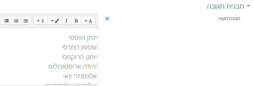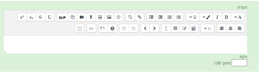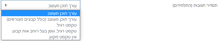 •  במידה ורוצים לאפשר לתלמיד את הבחירה או להתמש בעורך הטקסט או להעלות קבץ בוחרים ב"עורך תוכן כולל קבצים מצורפים)