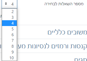- לאחר יצירת שאלת התמאה מבוססת שאלות... יש לבחור את מספר השאלות לבחירה.