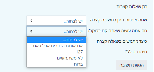 - המערכת בוחרת רק את התשובה הראשונה מהאפשרויות של השאלה הקצרה.