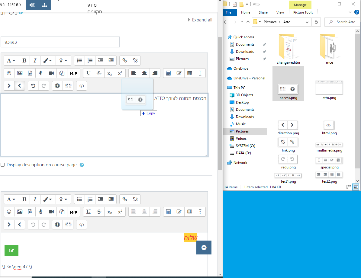 ישהם שתי דרכים להוסיף תמונה לעורך הטקסט של ATTO: