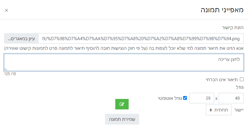 • לחיצה על כפתור הוספת תמונה  כפתור העלאת תמונה