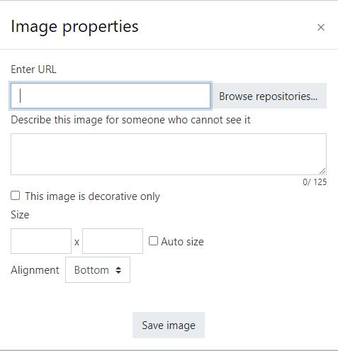 כדי לערוך תמונה בעורך הטקסט יש ללחוץ עליה פעמים. כתוצאה מכך התמונה תופיעה בחלון Image Properties.