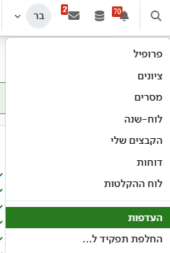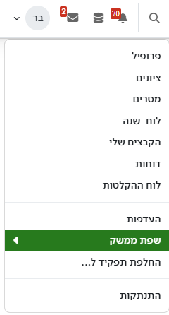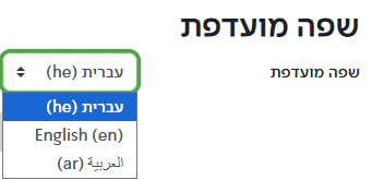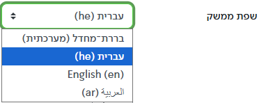 הערה: במידה ונקבעה שפת ממשק לקורס, המשתמש לא יוכל להעביר שפה באותו הקורס.