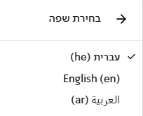 - בתפריט המשנה יש לבחור בשפה הרצויה: עבריתף אנגלית או ערבית.