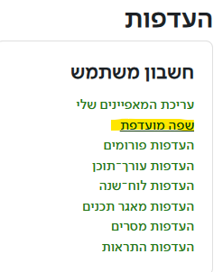 - בחלון העדפות יש לבחור בשפה מועדפת