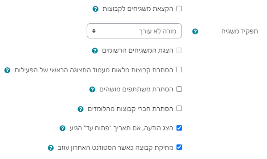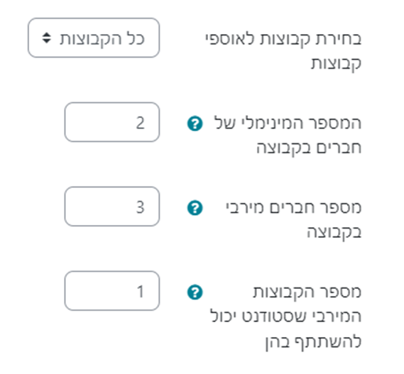 כאשר מגדירים פעילות אחרת כלשהי ניתן יהיה להשתמש בקבוצות שהוגדרו בפעילות "בחירה עצמית של קבוצה".
