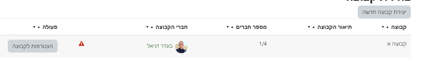 • במידה ונרשמו לקבוצה מספר מקסימלי של משתתפים תופיע הודעה: "לא ניתן לשייך חברים נוספים לקבוצה".