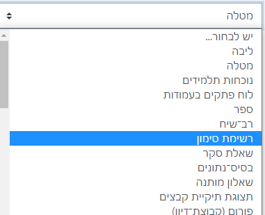 - בתפריט רכיבים למעקב: לבחור את הרכיב עבורו יהיה מעקב האירוע. לדוגמה הרכיב יכול להיות מטלה, מבחן, פורום ועוד.