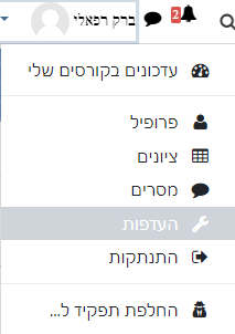 - פתיחת התפריט האישי (לחיצה על השם בחלקו השמאלי העליון של המסך)