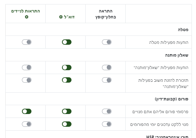 • להחליט האם לקבל או לבטל קבלת דואל לפעילות מסויימת.