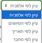 כאשר פותחים את אגרון המונחים יש כפתור תפריט לבחירת אופן מיון המונחים