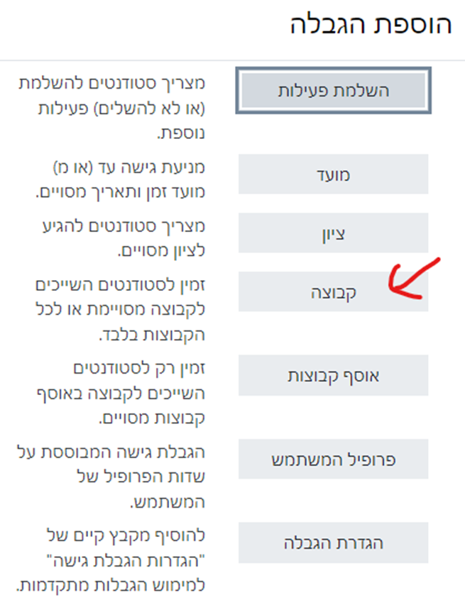 בתפריט הוספת הגבלה יש לבחור ב"קבוצה"