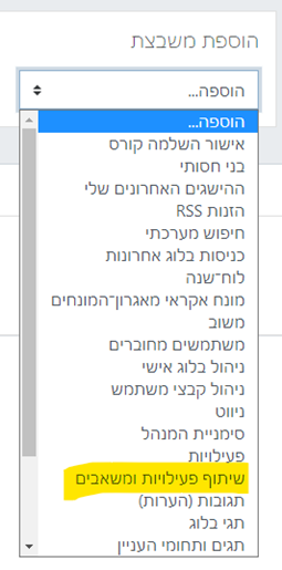 • להוסיף את משבצת "שיתוף פעילויות ומשאבים" (במידה והיא אינה קיימת עדיין).