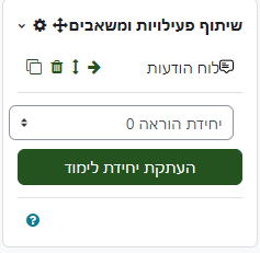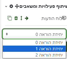 יש להקיש על החץ ביחידת הלימוד עליה רוצים להעתיק את הפעילות.