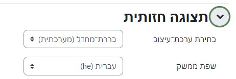 כאשר נכנסים למודל המערכת מוצגת בשפת ברירת המחדל. בהתאם לשפת ברירת המחדל יוצגו התפריטים, ההגדרות וכן היישור של הממשק (לימין או לשמאל).