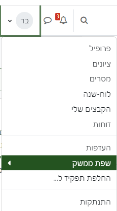 ניתן לשנות את שפת התצוגה מהתפריט האישי: