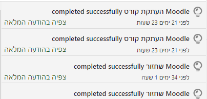 6. אייקון פעמון להודעות מערכת: מערכת מודל שולחת הודעות למשתמש בעקבות אירועי מערכת כמו סיום תהליך השחזור של הקורס. כאשר יש הודעת מערכת יופיע ריבוע אדום לצד הפעמון ובו מספר ההודעות שטרם נקראו.