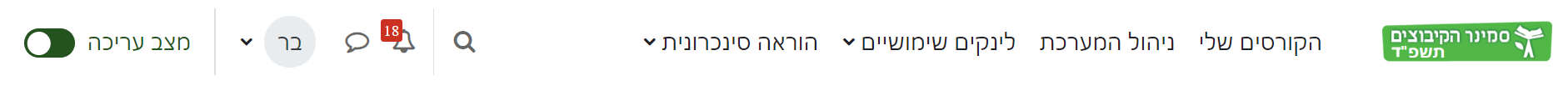 9. מצב עריכה: כפתור מצב עריכה הוא חלק מה-Header, וקיים לכל חלונות המערכת (לא רק לחלון הקורס).