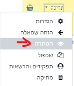 - מול הפעילויות הרצויה לחיצה על תפריט עריכה ואחר הסתרה