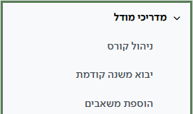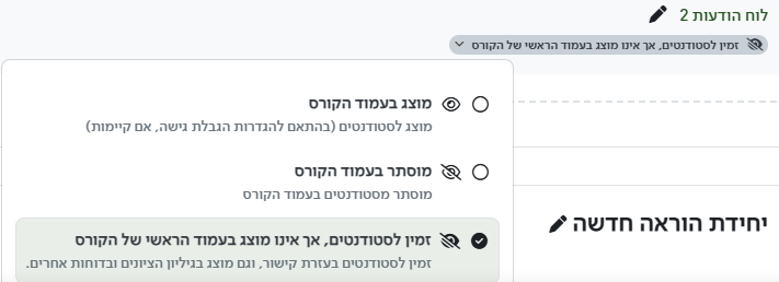 במידה ורכיב מסויים מוסתר או זמין (מוסתר בעמוד הקורס אך ניתן לגישה על ידי לינק) מופיע כיתוב באפור המציין את מצב הסתרה.