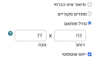 בחלון זה ניתן לבחור פרופורציות לתמונה וכן להוסיף לה תיאור.