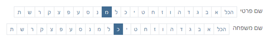• ניתן לאתר את התלמיד על יד בחירה באות הראשונה של השם הפרטי ובאות הראשונה של שם המשפחה.
