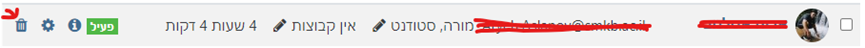 • לאחר מציאת הסטונדט להסרה יש ללחוץ על אייקון פח האשפה שמול שם הסטודנט