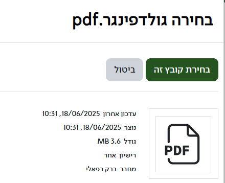 - בחירת הקובץ הרצוי ובחלון שיפתח לחיצה על בחירת קובץ זה