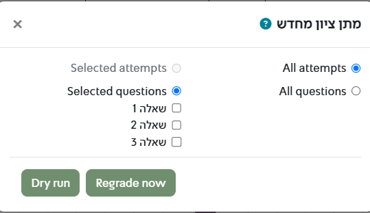 - ניתן לתת ציון מחדש למספר שאלות או לניסיון מסויים.