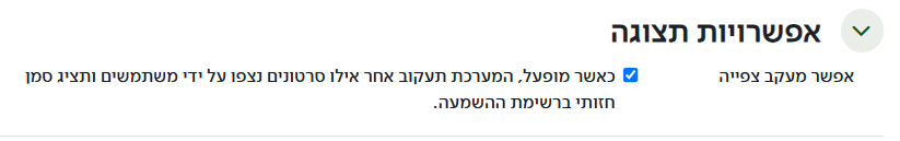 - מומלץ לאפשר מעקב צפייה באזור אפשרויות תצוגה. כך המערכת תסמן הקלטות שנצפו על ידי הסטודנטים.
